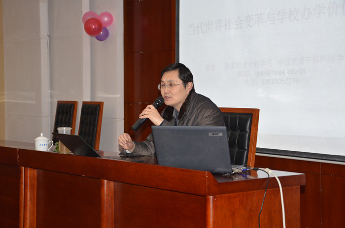 12月20日上午,教育部中小学校长和幼儿园园长国家级培训项目管理办公室常务副主任郭磊教授应邀来Beat365,为50名来自甘肃的农村中小学校长作了题为“社会变革时学校管理的价值取向”的讲座。
