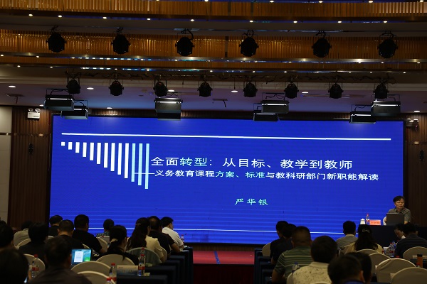 7月20日上午,江苏省中小学教师培训学会常务副会长严华银教授作《全面转型:从目标、教学到教师》的专题讲座。他从时代背景入手,谈基础教育变革转型;结合义务教育新课程方案,梳理其变化和亮点;从培养目标、教学内容、教学实施等方面论述课程方案、标准和新教材带给教育教学的重要变化。并叮嘱大家要练好内功,充分发挥教学科研部门的职能。