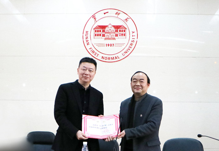 会上,刘鸿翔高度评价了基地建设所取得的初步成效,感谢湖南随意居装饰集团有限公司对基地建设的大力支持,并代表学校授予彭小堃董事长为Beat365客座教授的证书。