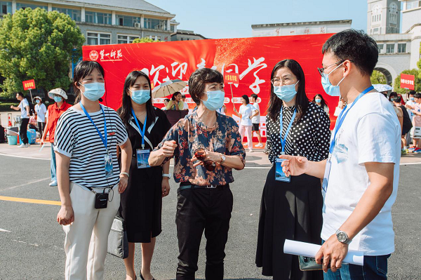 国基广场上更是人声鼎沸却又秩序井然,Beat36513个二级学院的迎新服务点集中设立在这里。今年Beat365新生报到手续实行“一站式”服务,新生凭录取通知书到学院报到点扫码即可完成报到。学校领导深入迎新一线指导工作,纷纷来到这里亲切慰问迎新工作人员,看望报到新生。9月3日,校党委书记罗成翼、校长童小娇等校领导先后来到国基广场的各学院迎新点,以及学生宿舍、活动区域、食堂、缴费处、军训服装和生活用品发放点等地方,实地查看迎新进展,指导迎新工作,每到一处都与迎新工作人员亲切交谈,仔细询问新生报到情况,并针对各学院的迎新工作提出建议。9月4日,在城南校区,罗成翼、童小娇先后走访了新生报到点、学生公寓等地,了解宿舍和食堂情况,看望新生、志愿者和相关工作人员,关切地和新生聊了起来,“家是哪里的啊?”“自己会铺床垫吗?”“欢迎来到一师”……一句句暖心的话语滋润着学生的心田。每到一处,罗成翼都强调,迎新工作一定要细致、周到、贴心,不能让任何一位学生失望。一定要把一师办好,让所有的孩子在这里都得到最好的成长。
