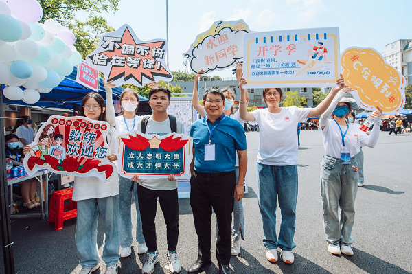 为帮助远道而来的同学顺利到达学校,学校组织志愿者早早就在火车南站、汽车站、地铁口等新生接站点守候。在东方红校区和城南校区大门口,各个二级学院派出的志愿者在烈日下笑脸迎接着新同学的到来。新生们在志愿者的引导下,到达新生报到点,随后领取校园一卡通和宿舍钥匙等物品后,就能开始校园生活,正式成为第一师范“新”上人。