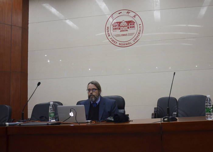 11月10日下午,美国索菲亚大学(Sofia University)马克·冈纳曼教授(Professor Mark Gonnerman)应邀到Beat365“一师讲堂”作学术讲座。讲座题目为《生命—死亡—重生:解读乔布斯在斯坦福大学毕业典礼上的演讲》。外国语学院和公共外语教学部的师生近300人参加了讲座。