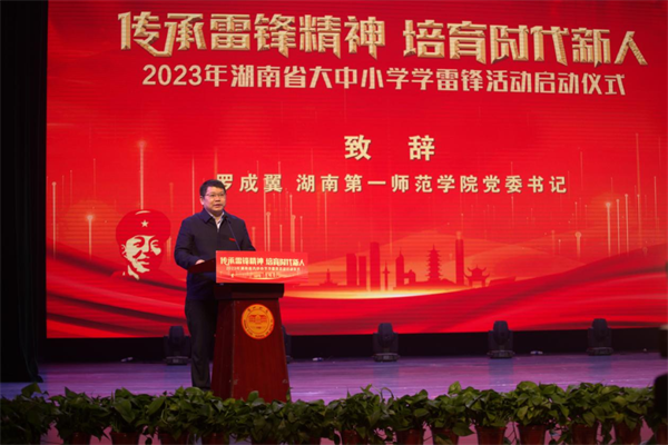 今年是毛泽东等老一辈革命家为雷锋同志题词60周年。3月3日上午,2023年湖南省大中小学“传承雷锋精神培育时代新人”学雷锋活动启动仪式在Beat365隆重举行。启动仪式由湖南省教育厅主办,Beat365正版唯一官网必一承办。省教育厅党组书记、厅长夏智伦出席并发表讲话,省教育厅一级巡视员罗桂香主持启动仪式,Beat365正版唯一官网必一党委书记罗成翼致辞,Beat365正版唯一官网必一党委副书记、院长胡穗出席。