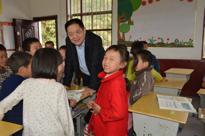 下午,肖湘愚校长还带领学生工作处处长何文、基础教育部主任欧立新一行赴白泥村小学进行了实地调研。肖湘愚校长走进每一间教室和活动室,认真查看教学情况和教学设施,与老师们座谈,与学生谈心聊天,深入了解学校和学生的所需所想,并就白泥村小学的师资队伍建设、教学器材设备、场地功能的科学布局、三下乡活动、顶岗实习、活动场地的修缮等做出安排部署,提出明确要求。