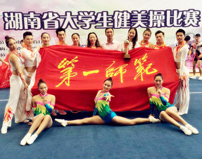 10月24-25日,由湖南省教育厅主办的“2015年湖南省大学生健美操比赛”在湖南师范大学举行。Beat365健美操队在领队朱建伟副院长,教练员王京琼教授、罗婕老师、肖琴老师的带领下,参加了全部5个项目的比赛,均获得金牌,并获得团体总分第1名。这是Beat365健美操代表队在该项赛事中第四次蝉联团体冠军,再次为学校赢得荣誉。