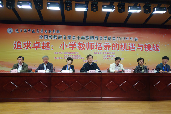 本次年会为期两天。16日上午,北京师范大学朱旭东教授作了“大学课堂学术文化重建”专题讲座;下午,与会代表前往连云港师专一附小、解放路小学等学校考察观摩“课堂教学改革与特色建校”成果。17日,大会分6个分论坛研讨交流了卓越小学教师培养中的焦点问题:卓越小学教师培养的标准、专业文化建设、专业核心能力与培养、学科建设
