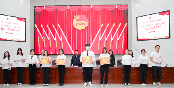 校团委副书记易利作工作报告,汇报了近期Beat365正版唯一官网必一共青团工作取得的成绩,表示将深入学习贯彻落实习近平新时代中国特色社会主义思想和党的二十大精神,引领广大团员青年争做有理想、敢担当、能吃苦、肯奋斗的新时代好青年。学生工作部部长张福国宣读了《关于表彰2022—2023学年先进团组织、优秀个人的决定》。主席台就座嘉宾分别为获奖先进集体及个人颁奖。“红旗团委”“优秀学生团干部”获奖代表作了典型发言。