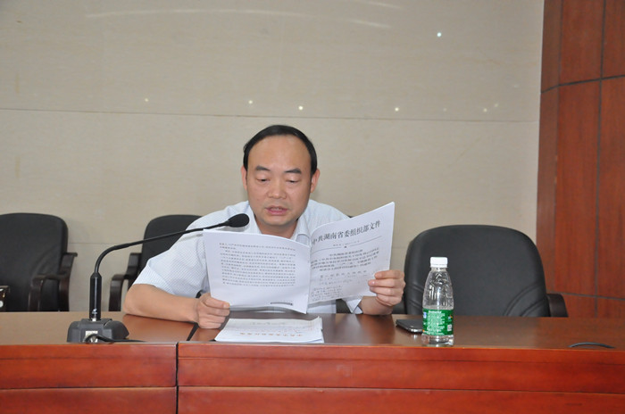 副校长刘鸿翔组织与会人员一起学习了中共湖南省委组织部《转发<中共中央组织部关于印发刘云山同志在部分地方单位学习贯彻习近平总书记重要讲话精神深化“三严三实”专题教育工作座谈会上的讲话的通知>的通知》文件精神;组织学习了中央关于四川南充、湖南衡阳拉票贿选案查处情况及其教训警示的通报中的主要内容。