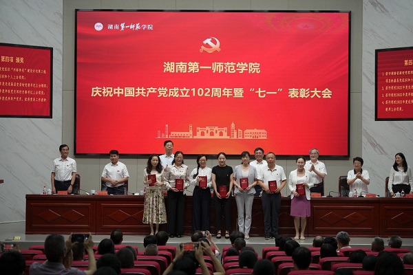 6月29日,庆祝中国共产党成立102周年暨“七一”表彰大会在东方红校区百熙楼228报告厅召开。校党委书记罗成翼出席会议并讲话,党委副书记、校长胡穗主持会议。全体在家校领导出席会议,全体中层干部、“光荣在党五十年”党员、党支部书记、获评全省高校党组织“对标争先”建设计划第三批项目的基层党组织和个人、获评学校2023年“两优一先”表彰的党组织和教师党员参加会议。