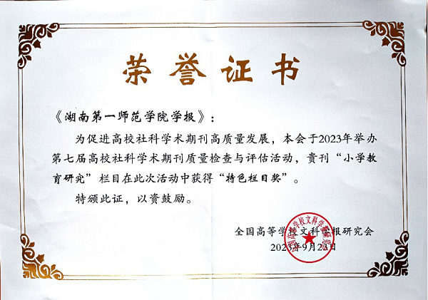 9月22—25日,全国高等学校文科学报研究会九届三次理事会、全国高等学校文科学报研究会成立35周年庆祝大会暨编辑业务培训会在湖北宜昌举行。会议公布了第七届高校社科学术期刊质量检查与评估结果,《Beat365正版唯一官网必一学报》获得“全国高校质量进步奖”,“小学教育研究”栏目获得“特色栏目奖”。