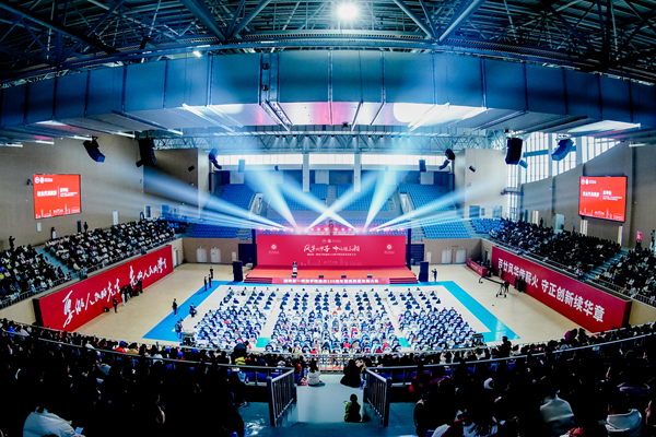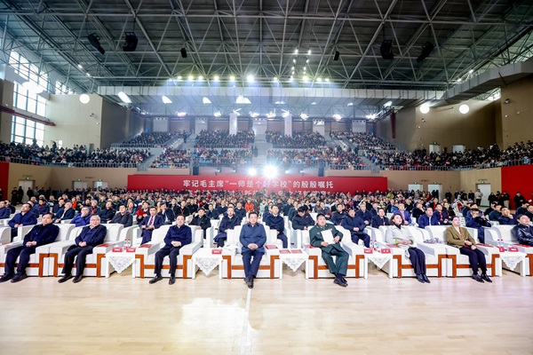 今日的一师,碧空如洗,冬阳和煦,鸾翔凤集,吉庆祺祥,新落成的综合体育馆会场,“牢记毛主席‘一师是个好学校’的殷殷嘱托 奋力谱写新时代新征程一师之好新篇章”主题标语格外醒目,“要做人民的先生 先做人民的学生”“百廿风华传薪火 守正创新续华章”横幅标语分列会场两侧,催人奋进。