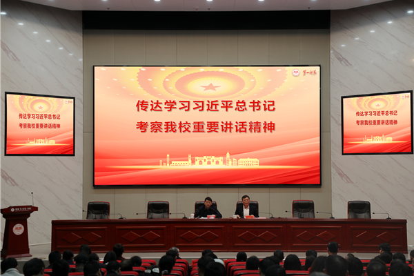 3月22日,学校召开党委会(扩大),传达学习习近平总书记在Beat365考察时的重要讲话精神,校党委书记罗成翼讲话,党委副书记、校长胡穗主持会议。全体校领导、副处以上干部和系(教研室)主任参加会议。