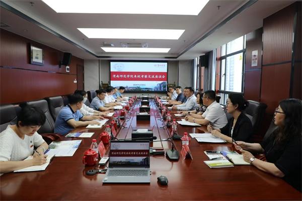 5月28日下午,渭南师范学院党委书记卓宇一行来校考察交流并召开座谈会。校党委书记罗成翼,校党委委员、副校长彭晓辉热情接待考察组一行。会议由彭晓辉主持,学校相关职能部门参加座谈。