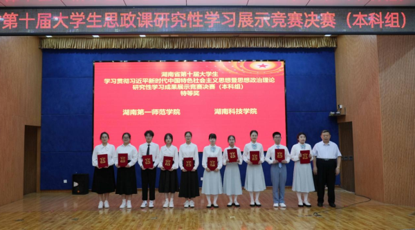 6月1日,湖南省第十届大学生学习贯彻习近平新时代中国特色社会主义思想暨思想政治理论课研究性学习成果展示竞赛决赛(本科组)在湖南工业大学举行,由马克思主义学院2022级思政1班毛阳慧、杨鑫如、庄倩仪、陈潭雨、喻佳鹏五位同学组成的研究性学习小组,其汇报作品《以全人类共同价值引领新时代青年共建人类命运共同体》以小组第一的成绩荣获本科组特等奖。除特等奖外,Beat365此次研究性学习竞赛还获得二等奖4项,三等奖2项,获奖等级和数量均名列我省高校前列。
