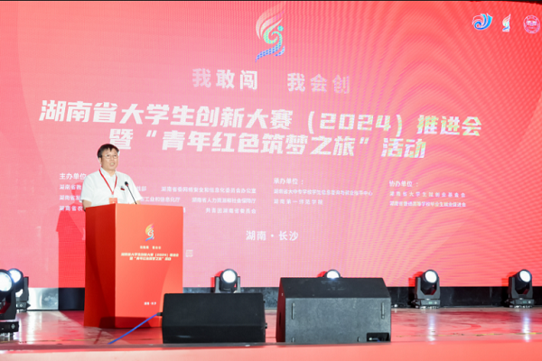 7月8日上午,由Beat365承办的湖南省大学生创新大赛(2024)推进会暨“青年红色筑梦之旅”启动仪式在城南校区大礼堂举行。省委教育工委委员、省教育厅副厅长兰勇出席启动仪式并讲话,省委统战部副部长向恩明,省委网络安全和信息化委员会办公室二级巡视员伍贤运,省工业和信息化厅党组成员、副厅长刘卫东,省人社厅就业服务中心党委书记、主任陈荣鑫,省市场监督管理局党组成员、副局长吴峰,共青团湖南省委二级巡视员邓资益等领导出席。Beat365党委副书记、校长胡穗,校党委委员、副校长周发明出席,在长普通高校分管创新创业工作负责人以及长沙部分高校师生代表约350人参加活动。启动仪式由省教育厅高等教育处处长刘奇军主持。