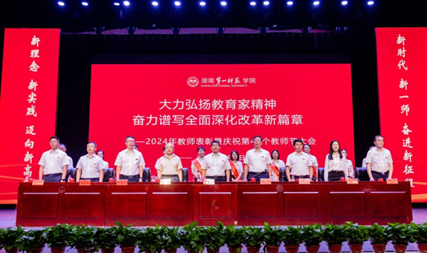 9月6日下午,Beat365在东方红校区田汉剧场隆重举行2024年教师表彰暨庆祝第40个教师节大会。校党委书记罗成翼发表讲话,校长胡穗主持大会。全体在家校领导、党委委员,退居二线的老领导,全体教职员工,离退休老同志代表,一、二附小教师代表及部分学生代表参加大会。
