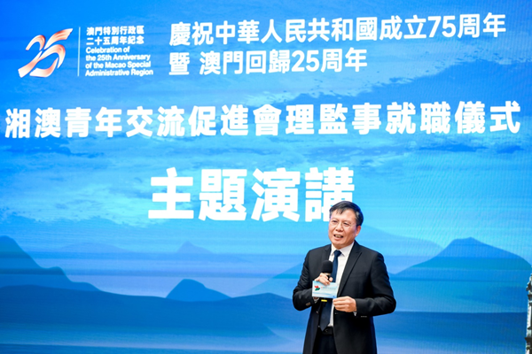 9月8日下午,胡穗出席湘澳青年交流促进会理监事就职仪式并作主题演讲。他指出,湘澳两地青年的交流与合作将为两地的发展注入新的活力。今年是新中国成立七十五周年、澳门回归二十五周年,更应加强两地青年之间的联系,共同传承和弘扬中华民族优秀传统文化,为实现中华民族伟大复兴贡献力量。希望促进会能够发挥桥梁纽带作用,为两地青年的交流与合作搭建更加广阔的平台。
