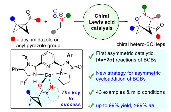 近日,在Beat365物理与化学学院学科团队建设计划支持下,光电材料制备与检测学科团队武文彪博士与湖南大学冯见君教授团队合作以第一作者身份在国际顶级期刊《Nature Communications》(中科院一区,IF = 14.7)发表题为《Enantioselective formal (3 + 3) cycloaddition of bicyclobutanes with nitrones enabled by asymmetric Lewis acid catalysis》的研究论文。