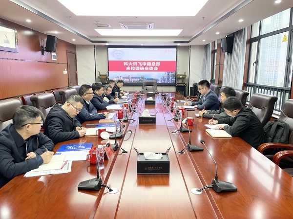 11月19日上午,科大讯飞中南总部湖南分公司执行总经理王金生、科大讯飞研究院智能硬件技术总监陈健祥等一行4人来校调研交流。校党委书记罗成翼出席交流会并讲话,党委委员、副校长彭晓辉主持会议。