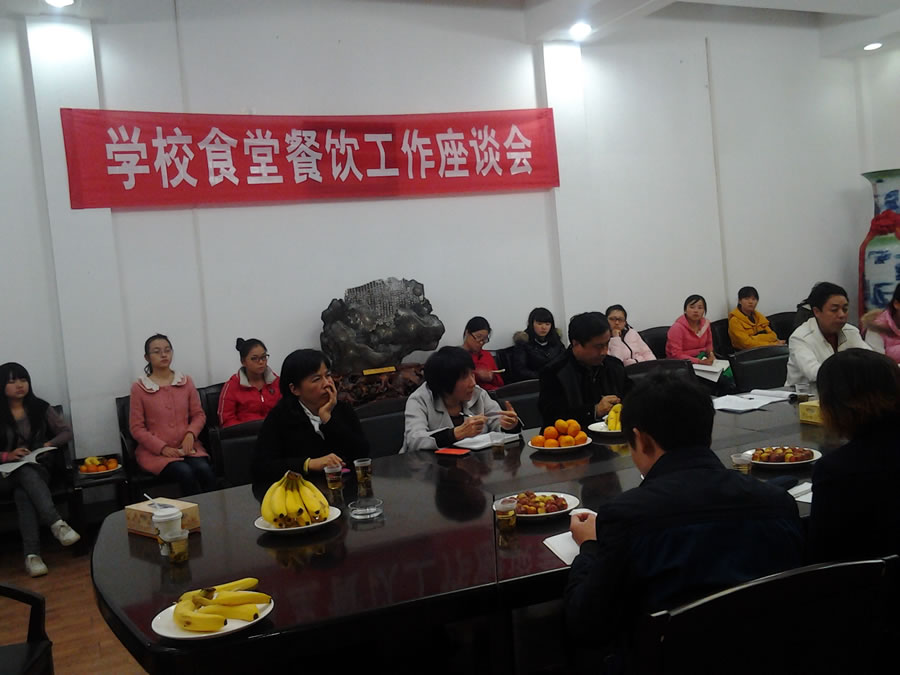 为督促东方红校区学生食堂不断提高经营服务质量和水平,加强食品卫生安全管理,确保食堂的稳定经营服务工作。11月20日晚上,后勤服务公司组织召开了学生食堂专门座谈会。后勤公司经理张建国及监管老师、各食堂经营方、校学生会权益服务部学生干部代表、各食堂学生大堂经理、伙管会学生干部代表参加了会议。座谈会由张建国主持。