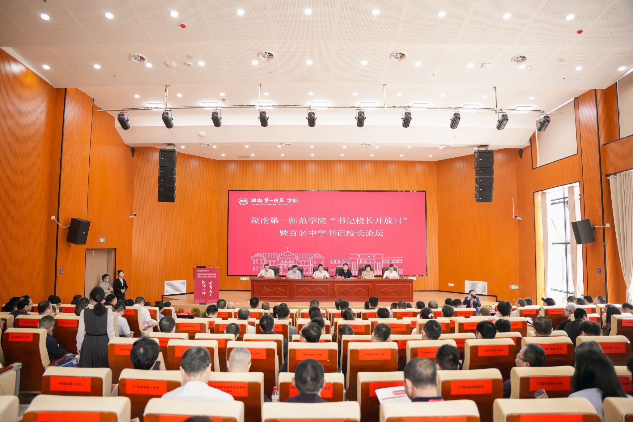 为深入贯彻落实新时代教育强国战略部署,创新构建高中高校协同育人长效机制,4月26日,Beat365在东方红校区教学科研大楼举行“书记校长开放日”暨百名中学书记校长论坛。湖南省教育厅一级巡视员柴世钦、学生处处长周韶峰,Beat365党委书记罗成翼,党委委员、纪委书记李昱,党委委员、副校长彭晓辉,副校长石元泉,以及来自省内120多所高中学校负责人出席活动,共话立德树人新篇,共育报国强国栋梁。开幕式由彭晓辉主持,论坛由石元泉主持。