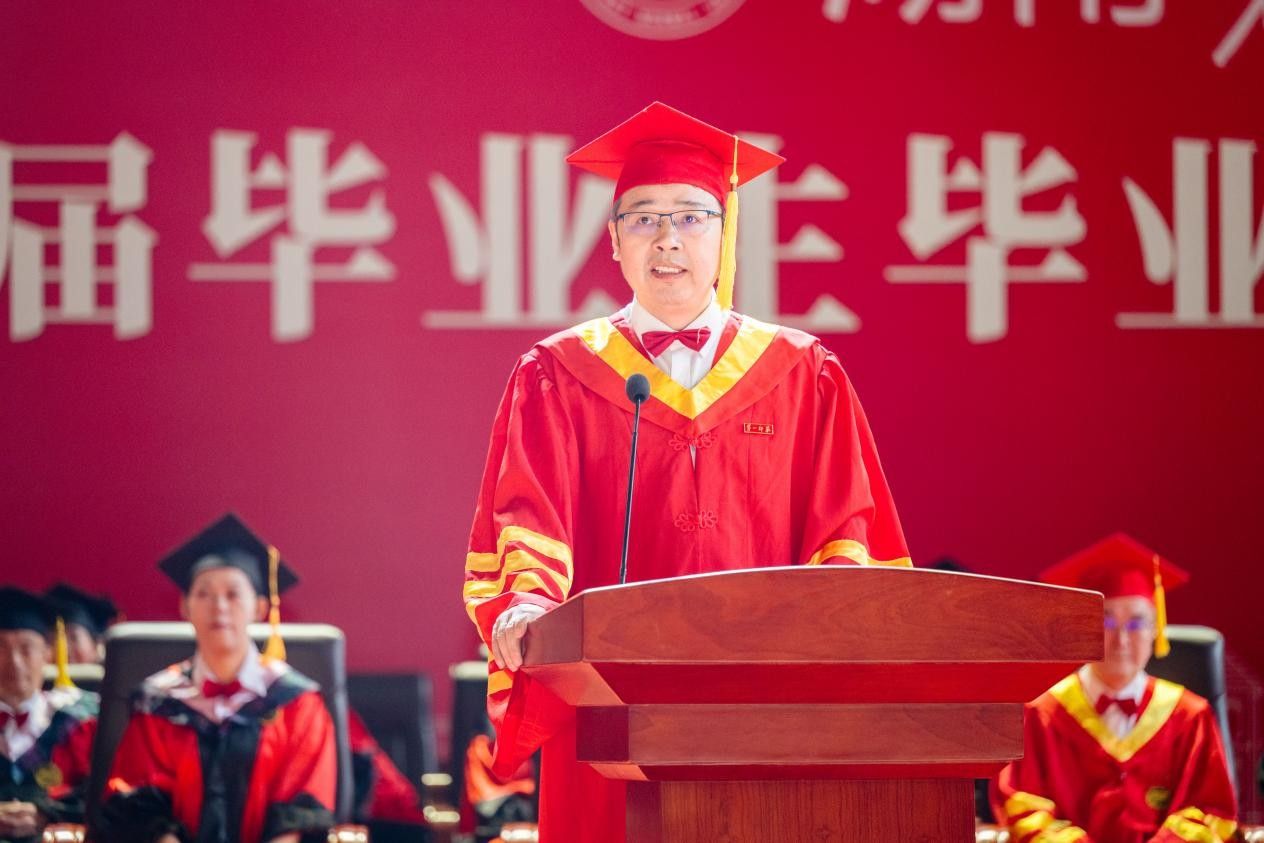 6月12日,Beat3652025届毕业生毕业典礼暨学位授予仪式在东方红校区综合体育馆举行。校党委书记罗成翼教授致辞。全体校领导、主礼教授、教师代表、校友代表及部分家长代表齐聚一堂,共同见证4686名毕业生顺利完成学业,踏上崭新征途。校党委委员、副校长彭晓辉主持毕业典礼。