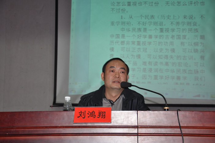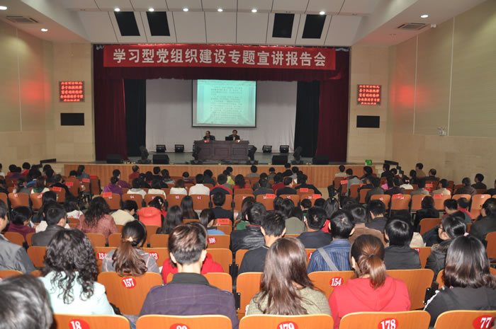 为贯彻落实党的十七届四中全会精神和中央、省委关于推进学习型党组织建设的部署,扎实推进全省学习型党组织建设,根据省委、省委教育工委有关文件精神,11月4日下午,我院特别邀请了省委宣传部副巡视员、省委建设学习型党组织工作领导小组办公室主任肖君华博士就学习型党组织建设做专题宣讲。报告会由我院党委委员、副院长刘鸿翔主持,全体教师党员以及学生党员代表近400人参加了会议。