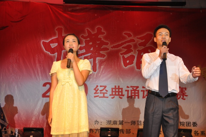 2010年9月12日至18日是第十三届全国推广普通话宣传周,根据上级有关文件精神,结合我院今年申报省级语言文字规范化示范校的实际情况,9月20日晚上7点30分,由我院语委办、团委联合主办的 “中华诵 2010经典诵读选拔大赛”决赛在东方红校区演播厅隆重举行并取得了圆满成功。