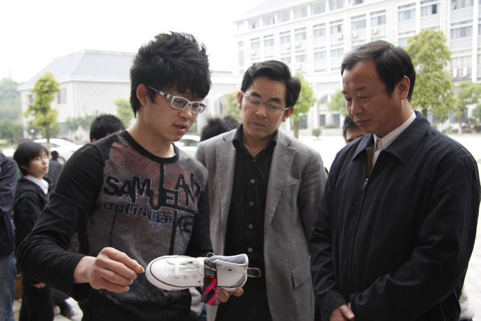 今天,他们将自己“手绘鞋”创业活动的图片、成果向全院师生进行展示,以激发同学们的创业热情,弘扬创业文化,引导和鼓励大学生自主创业,在学院内营造浓厚的自主创业氛围。副院长刘志敏、纪委书记阳柏苏及教务处、学生处的相关领导参加了展示活动的开幕式。刘院长、阳书记饶有兴趣地了解了汪鹏辉他们的创业经历,并鼓励大学生学习他们这种创业精神,另辟蹊径,大胆创业。