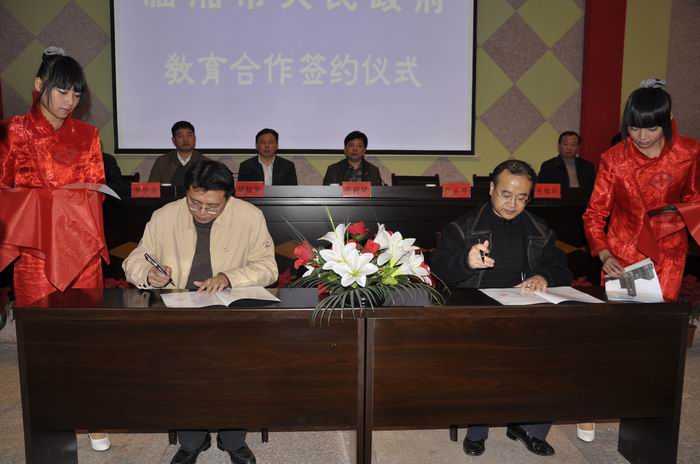 12月1日,我院与临湘市人民政府教育合作签约仪式在临湘市第一中学成功举行。我院院长彭小奇与临湘市市长毛知兵共同签署了《Beat365正版唯一官网必一与临湘市人民政府合作办学协议书》。省教育厅高教处处长唐利斌,我院副院长李学全、刘志敏,临湘市委书记胡知荣、市委副书记李美云、副市长许永、市人大副主任贺望成、市政协副主席陈长英等出席了签约仪式。仪式由临湘市市委副调研员、教育局局长曹小光主持。