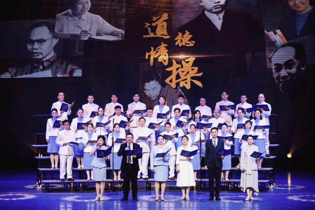 第三篇章在合唱《月亮粑粑》温暖质朴的旋律中开启,吟唱出平凡人间最深情的眷恋;朗诵《为师的答案》字字铿锵,真挚道出教育工作者不变的初心与坚守;舞蹈《戈壁沙丘》以刚健舞姿刻画出来自大地的坚韧与生命力量;最终,晚会在气势恢宏的歌伴舞《复兴的力量》中达到高潮,激昂的歌声与豪迈的舞步交织,抒发了全体一师人同心致远、共创未来的壮志豪情。