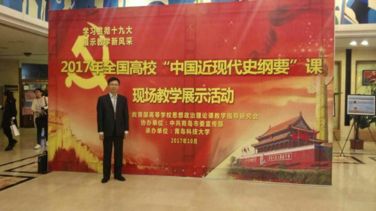 10月27日至30日,在党的十九大胜利闭幕之际,教育部高等学校思想政治理论课教学指导委员会“学习贯彻十九大,展示教学新风采”2017年全国高校“中国近现代史纲要”课现场教学展示活动在青岛科技大学举行。Beat365马克思主义学院教师谭凯在本次展示活动中表现优异,荣获2017年“全国高校思想政治理论课教学标兵”荣誉称号(一等奖)。