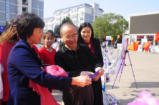 10月30日中午12:00,由校团委主办,各二级学院团总支协办的“Beat365正版唯一官网必一2017年大学生暑期文化科技卫生‘三下乡’社会实践活动成果展”在文化广场举行。校党委书记彭小奇、校长童小娇到现场观摩指导,各二级学院负责人和师生共2000余人参观了成果展。