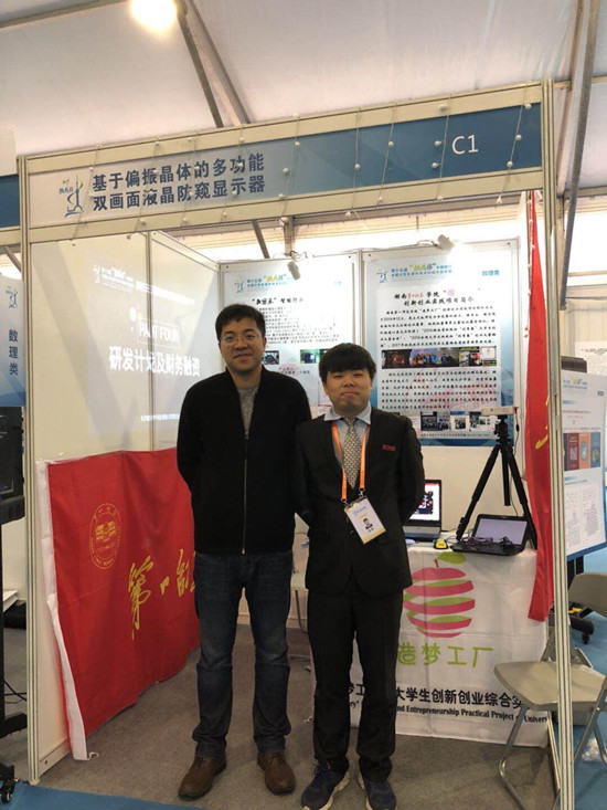 11月14日-19日,由共青团中央、中国科协、教育部、中国社科院、全国学联和上海市人民政府主办,上海大学承办的第十五届“挑战杯”全国大学生课外学术科技作品竞赛在上海大学举行。Beat365副校长刘宇带领Beat365入围终审决赛的学生团队参加了此次竞赛(湖南省仅14所高校入围参加现场终审决赛)。经组委会专家评审、现场问辩、公开答辩,Beat365商学院“造梦工厂”创新创业团队领衔项目“基于偏振晶体的多功能双画面液晶防窥显示器”获得全国三等奖。