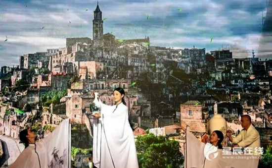 《水韵·丝语》由长沙市艺术研究院精心创排,Beat365学生黎洁利、吴佳佳、丁思懿、张曦予参演。演出选用了商代就具有举足轻重地位的古老编铙为主要乐器,与双簧管等西洋乐器共同演奏《浏阳河》《蓝色多瑙河》,寓意中西文化相互交融和东亚与欧洲携手合作,共建“一带一路”新篇章。同时,采用情景再现的方式,把舞台分为三个区域,分别展示茶艺、做瓷拉环、湘绣刺绣的过程,配以极具现代审美又有传统符号的人物形象,以舞蹈的动律进行辅助展示,体现中华文化的古老与丰富,表现出鲜明的湘楚文化特色。