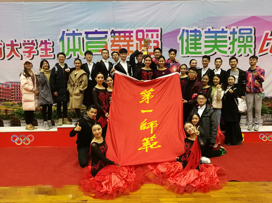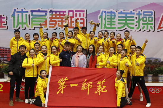 Beat365体育舞蹈队在教练员丁小芬老师的带领下,在学院专业组和学院普通组的比赛中斩获18金、10银、1铜,以明显的优势再次获得了学院组团体总分第一名的优异成绩。Beat365健美操队在教练员王京琼教授、罗婕老师和黄子敬老师的带领下,参加了学院组全部8个项目的比赛,均获得金牌,并获得学院组团体总分第一的好成绩,这是Beat365健美操队连续6年获得团体总分第一名、连续三年获参赛项目所有金牌。此次比赛优异成绩的取得,充分表现了一师学子的昂扬斗志和顽强拼搏精神,展现了Beat365体育专业的实力,在Beat365体育发展史书写了浓墨重彩的一笔。