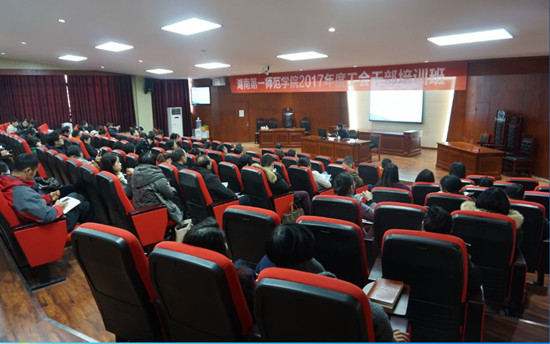 为全面贯彻落实党的十九大精神,帮助工会干部明确新时代工会工作新要求,提升工会干部履职尽责工作能力,12月8日,校工会举办了2017年度工会干部培训班。校党委副书记、工会主席刘志敏、工会常务副主席陆军、专职副主席成海英、兼职副主席陈秀琼以校工会委员、分工会委员等专职(兼)职工会干部近100人参加培训。培训由刘志敏主持。