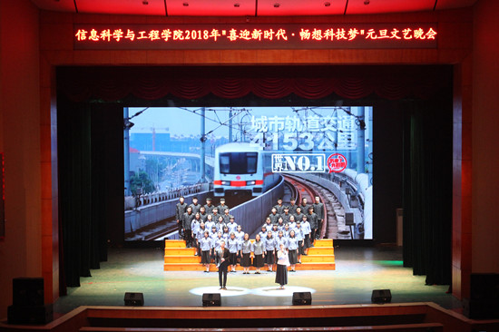 欢歌笑语辞旧岁,喜气洋洋迎新年。12月21日晚,信息科学与工程学院 “喜迎新时代·畅想科技梦”2018年元旦文艺晚会在东方红校区音乐剧场隆重举行。校党委书记彭小奇,校长助理、信息科学与工程学院院长李勇帆,学生工作处、现代教育技术中心、校团委相关负责人应邀出席,信工学院全体师生及校友代表、学生家长代表、长沙航空职业技术学院学生嘉宾等1000余人观看了演出。