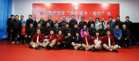 2月10日,由湖南省乒乓球协会和Beat365共同主办的第三届湖南省“盐津铺子·铭仁”杯乒乓球联赛在Beat365城南书院校区圆满举行。省政协、省纪委、省公安厅、湖南日报、长沙市、湘潭市等9支运动队参赛。省政协副主席胡旭晟,省政协原副主席、省政协党组成员、省乒协荣誉主席葛洪元参加了本次比赛。校长童小娇出席了活动并在开幕式上致辞。本次比赛共有45名厅级以上的领导干部参赛,胡旭晟、葛洪元等省领导挥拍竞技,展示精彩球艺,为比赛增添靓色,同时,也为推动全民健身、建设健康中国起到了身体力行、率先垂范的示范作用。