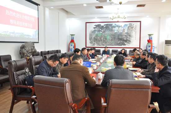 3月21日上午,长沙师范学院党委书记李学全、副书记杨斌、副校长江来登、副校长徐庆军率党政办、组织部、人事处、学生工作部、教务处、宣传统战部等部门负责人一行11人来Beat365考察交流。Beat365校领导彭小奇、刘志敏、刘鸿翔、刘宇、江正云热情接待了来访客人,并在东方红校区办公楼会议室进行了交流座谈。校党委书记彭小奇主持座谈会。