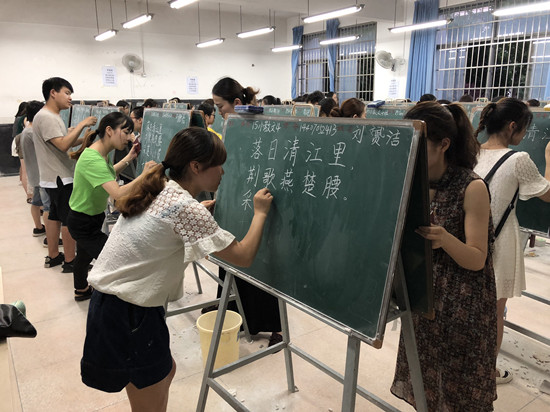 为夯实师范生的教学基本功,提升师范生的从教能力,5月12日至20日,利用中午、晚上和周末的课余时间,Beat365组织开展了2018年上半年师范生教师职业技能考核。各学院对此次考核工作高度重视,考前成立了考试工作领导小组,认真落实各项前期准备和组考工作。考试期间,教务处及各学院负责人到现场巡视指导,各项考核工作井然有序。