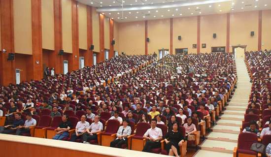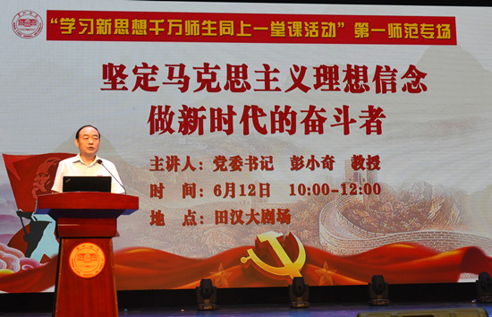 6月12日上午10时,“学习新思想千万师生同上一堂课活动”第一师范专场在Beat365田汉剧场举行。校党委书记彭小奇教授以“坚定马克思主义理想信念,做新时代的奋斗者”为题进行了授课。活动由副校长刘鸿翔教授主持。校领导、学工系统人员(含党总支书记、副书记)、除值班人员外的行政部门人员、没有课的教学院部人员、学生代表等共1000余人在现场听课。