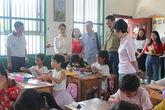 在浏阳市大瑶镇杨花完小,校领导观摩了实践队员们的支教课堂,询问了解当地小学生在Beat365学生支教实践活动中的收获与感受,随后与当地村镇干部、学校负责人和实践队员代表进行了座谈。在澄潭江镇槐树小学和张坊镇张坊中学,校领导一行先后参观了实践队的支教、调研成果展,观看了实践活动汇报演出。