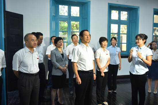 许达哲一行来到Beat365城南书院校区,走进毛泽东与第一师范纪念馆和附小主事室,参观了毛泽东在此求学任教时的八班教室、寝室、阅报室、办公室等,了解了Beat365的历史沿革、办学理念、办学特色等情况。