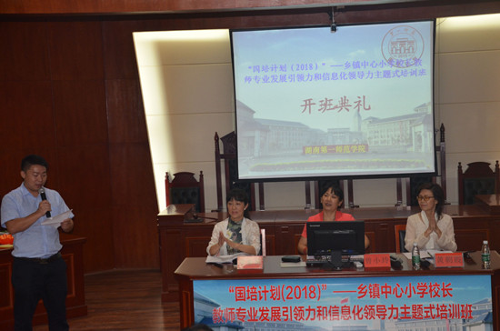 9月12日上午,“国培计划(2018)”乡镇中心小学校长教师专业发展引领力和信息化领导力主题式培训班开班典礼在特立楼南栋112教室举行。来自我省娄底市、郴州市的70名乡镇中心小学校长将在这里进行为期9天的培训。继续教育学院院长曾小玲、副院长黄朝霞出席开班典礼。