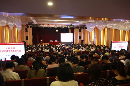 此次培训工作分专题培训和测试两个环节。上午,先后听取了中南大学组织部副部长罗永忠主讲的《怎样当好新时代高校党支部书记》、衡阳师范学院党委副书记刘福江主讲的《高校党支部设置标准化与组织生活正常化建设》、湖南理工学院副校长刘亦工主讲的《高校党支部管理服务精细化、工作制度体系化、阵地建设规范化建设》三个专题。下午,全体学员进行了培训测试。