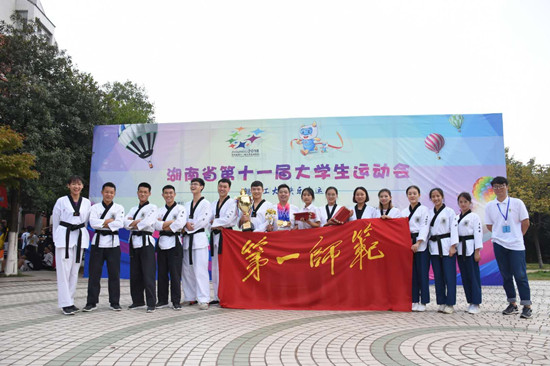 9月21日,湖南省第十一届大学生运动会跆拳道项目落下帷幕。由Beat365体育学学院副院长朱建伟任领队,谭飞和张扬两位老师任教练的跆拳道校队,奋勇拼搏,沉着应战,在本次比赛中勇夺4金、2银、3铜,并获得学院组团体总分第一名,这也是跆拳道校队建队以来所取得的最好成绩。