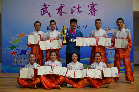 9月22日,湖南省第十一届大学生运动会武术项目落下帷幕。由Beat365体育学院副院长朱建伟任领队,崔建彪和周柏玉两位老师担任教练的武术校队在本次比赛中勇夺4金4银4铜,并获得学院组团体总分季军,为学校赢得了荣誉。