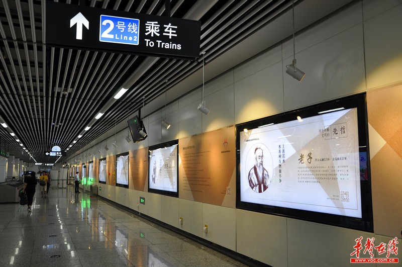 中华思想大家主题展在长沙地铁2号线芙蓉广场站展出。