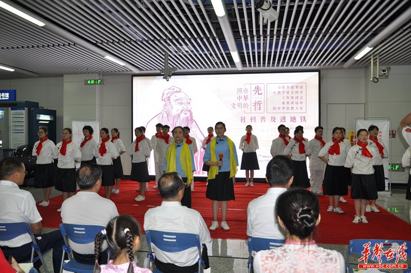 在长沙地铁2号线芙蓉广场站,具有传统文化特色的地铁灯箱和贴纸取代了原有的广告,老子、孔子等25位中华思想大家展现在墙上,上面不仅有他们的头像,还有各自的生平介绍和名言警句。活动现场,Beat365正版唯一官网必一和中南大学经典诗词吟诵基地的志愿者着中华传统服饰,分别进行了毛主席经典诗词和湖湘名篇的诵读、古乐演奏等表演。